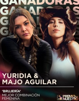 Majo Aguilar obtuvo dos galardones en el “Premio Lo Nuestro 2026” uno de ellos tras vencer a Ángela Aguilar en la categoría Mejor Combinación Femenina y Artista, triunfo que obtuvo junto a Yuridia por el sencillo “Brujería”.