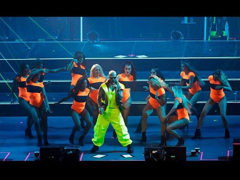 Las llamas, columnas de humo, juegos de luces y los colores fluorecentes fueron parte importante del espectáculo que mostró el intérprete de «Borró Casette», que fue ovacionado y elogiado por sus fanáticos que no dejaron de gritarle «estás bien guapo», «te amo», «sabroso» y otros adjetivos de su cuerpo.