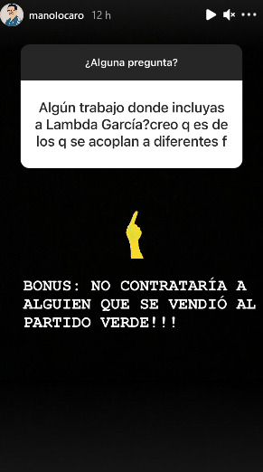 A través de las redes sociales, Manolo Caro hizo una serie de preguntas y respuestas, en donde uno de sus seguidores lo cuestionó sobre si incluiría en alguno de sus trabajos a Lambda García, artista involucrado en el mencionado caso