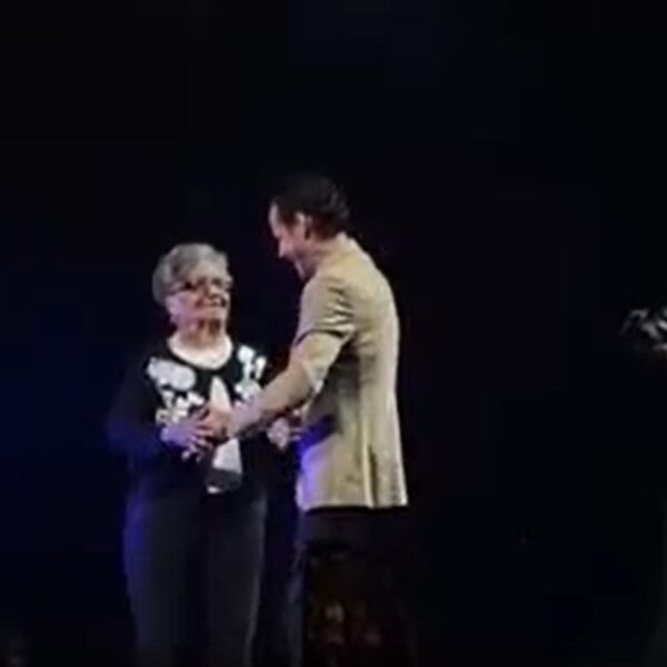 Y tal como una vez, Marc se acercó a cantar con un fan invidente, ahora nuevamente le brindó alegría a su fan de 95 años al subirla al escenario para bailar con ella.
