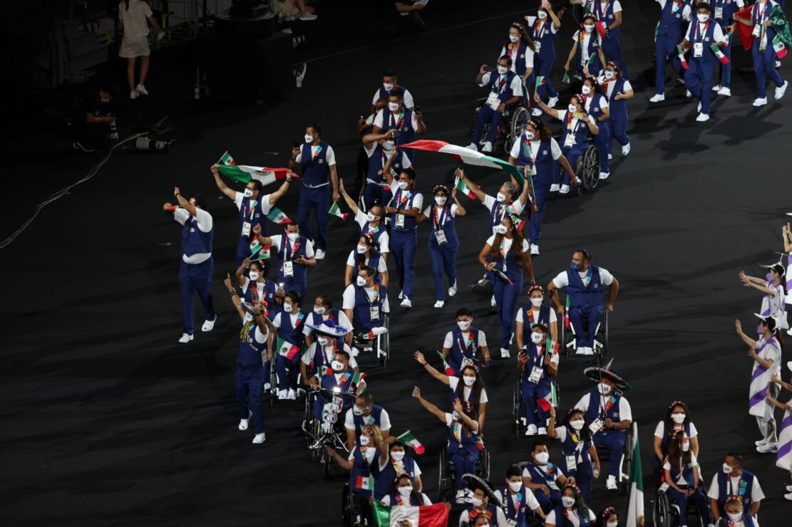 Tal y como ocurrió en los Olímpicos de hace unas semanas, México desfiló en los últimos lugares de acuerdo al alfabeto japonés, lo hizo con la leyenda Amalia Pérez y Diego López como sus abanderados, luciendo el mismo diseño que los atletas olímpicos, aunque en vez de saco completo presentaron un elegante chaleco.