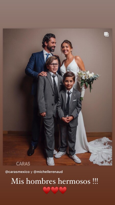 De la misma manera, compartió una foto de la revista Caras en la que aparecen junto a sus respectivos hijos, Axel y Marcelo, fruto de sus relaciones anteriores con María José Magán y Josué Alvarado, para expresar: “Mis hombres hermosos”.