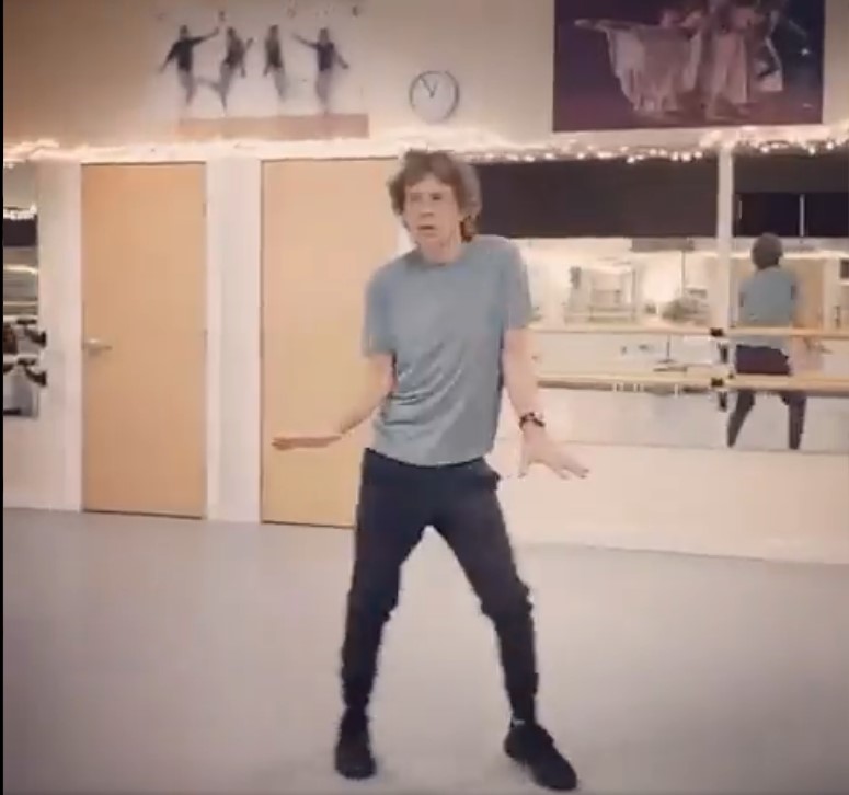 Vistiendo un pantalón oscuro, tenis y una playera gris, el clip muestra al fundador de los Rolling Stones moviendo las caderas, girando en un sólo pie y realizando una serie de pasos verdaderamente envidiables.