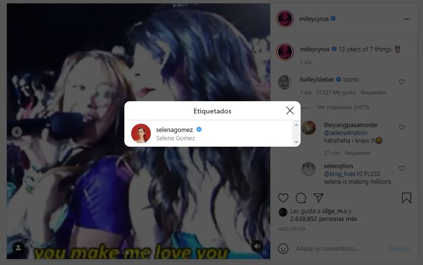 Mientras que en otro video etiqueta a Selena Gomez, en donde ambas aparecen cantando la canción ‘7 things’ en los Teen Choice Awards del 2008.
