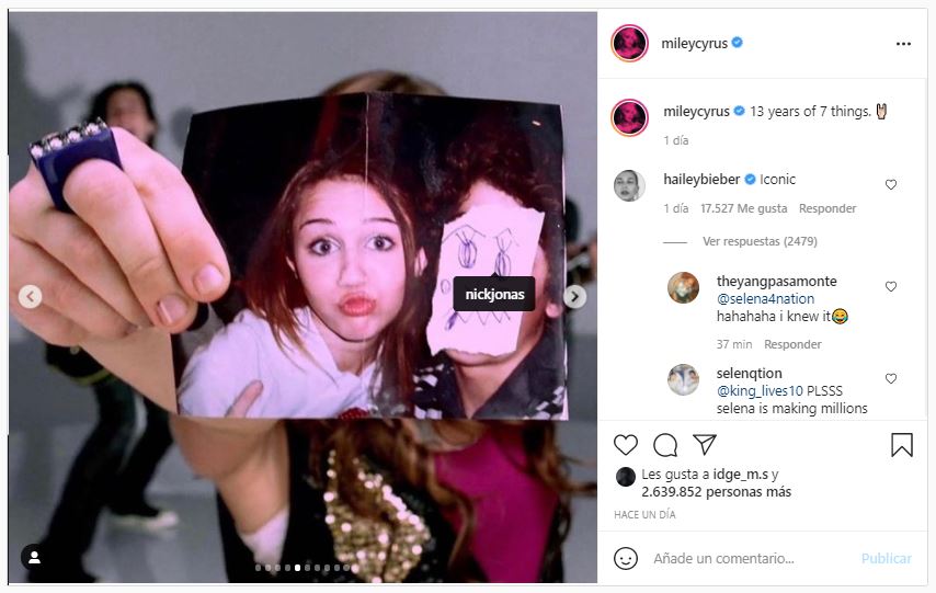 Lo cual ya confirmó Miley Cyrus, pues a través de su cuenta de Instagram, la cantante compartió un carrete de fotos y videos en donde etiquetó a Nick Jonas y Selena Gomez, quienes fueron su inspiración para canción.