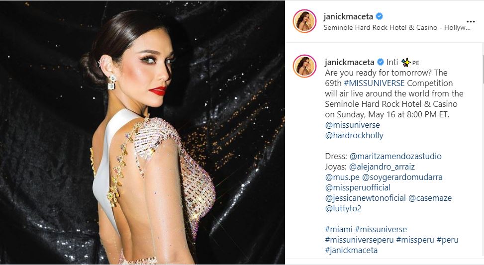 El pasado 16 de mayo, Janick Maceta, Miss Perú, hizo historia al colocarse dentro de las tres finalistas del concurso de belleza más importante: ‘Miss Universo’; y aunque al final la decisión de los jueces favoreció a la representante mexicana, cabe mencionar que Janicka, quien fue la favorita durante toda la competencia, quedó en tercer lugar.