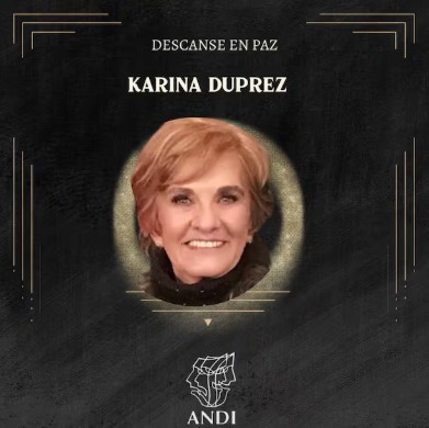 «El Consejo Directivo y el Comité de Vigilancia de la Asociación Nacional de Intérpretes comunican el sensible fallecimiento de nuestra socia intérprete Karina Duprez. Actriz y directora mexicana con una amplia trayectoria en la industria televisiva. Se le recuerda por su participación en melodramas como Rosa salvaje, Mundo de juguete y La fuerza del amor. A sus familiares y amigos mandamos nuestras más sentidas condolencias de parte del Consejo Directivo y Comité de Vigilancia de la ANDI», se indica en el comunicado.