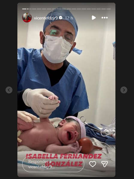 La noticia fue dada a conocer la noche del 6 de febrero de 2026 mediante las redes sociales de ambos padres, donde compartieron la primera fotografía de la recién nacida. En la imagen, Vicente Fernández Jr. aparece con bata de quirófano mientras sostiene la mano de su hija en una sala hospitalaria, escena presentada como símbolo del inicio de esta nueva etapa familiar.