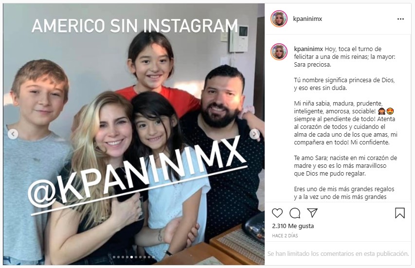 La mayor de las hijas de Karla Luna cumplió este fin de semana 12 años y Panini decidió felicitarla con un largo mensaje en Instagram en donde está acompañada de su padre y de sus hermanos.