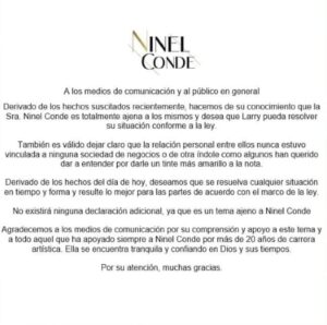 Ninel Conde reaccionó ante la detención de su esposo Larry Ramos, y pintó su raya ante dicho suceso, y dejó en claro que su relación con el empresario no es de negocios.