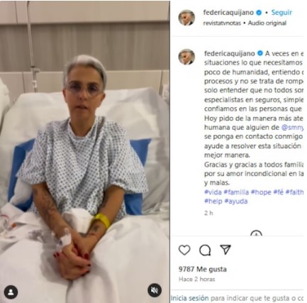 “Como pueden ver estoy internada, estoy en el hospital. Este es un mensaje pidiéndole y solicitando ayuda a mi seguro”, comentó la artista.