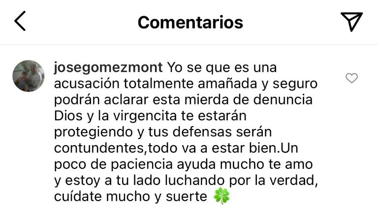 “Yo sé que es una acusación totalmente amañada y seguro podrán aclarar esta mierda de denuncia. Dios y la virgencita te estarán protegiendo y tus defensas serán contundentes, todo va a estar bien. Un poco de paciencia ayuda mucho”, fueron las palabras del padre de Inés Gómez Mont.