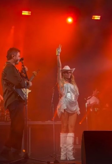 Con una introducción cargada de admiración, los músicos anunciaron la entrada de la mexicana: “Siempre soñamos que habría un mañana en que esto iba a pasar, y ya es mañana. Lo siguiente no ocurre desde hace diez años; la primera canción que sacamos fue en 2015 y la compartimos con una cantante a la que admiramos un montón. Con ustedes, ¡un fuerte aplauso para Paulina Rubio!”.