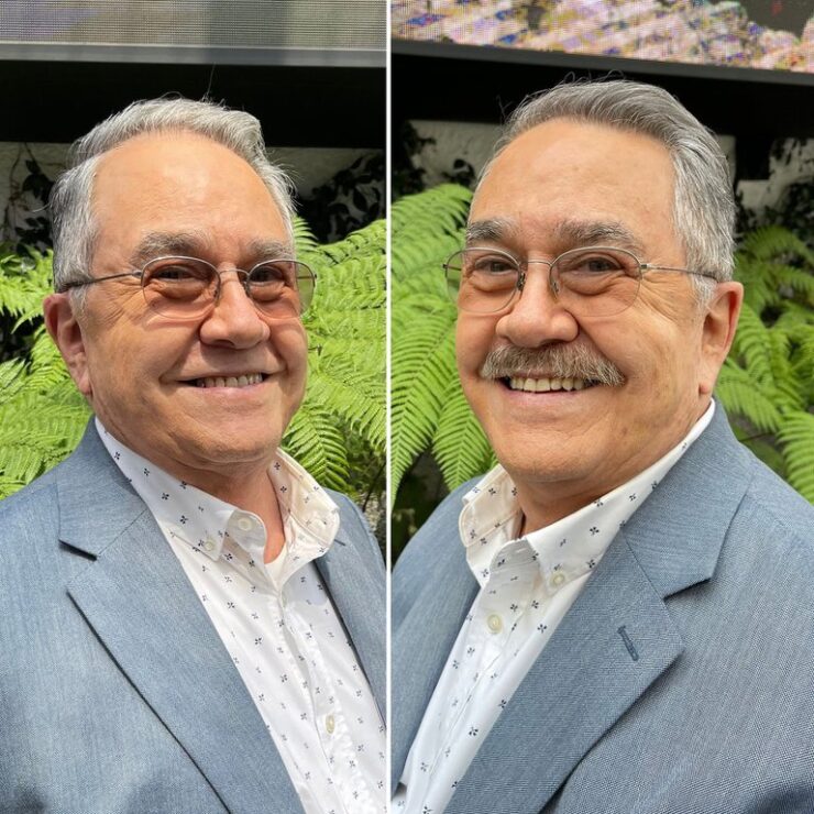 También publicó una imagen comparativa en la que ‘Pedrito Sola’ aparece antes y después de su nueva imagen, en ambas fotos está sonriendo y luce un saco gris, mismo con el que apareció en la edición de este 1° de junio.