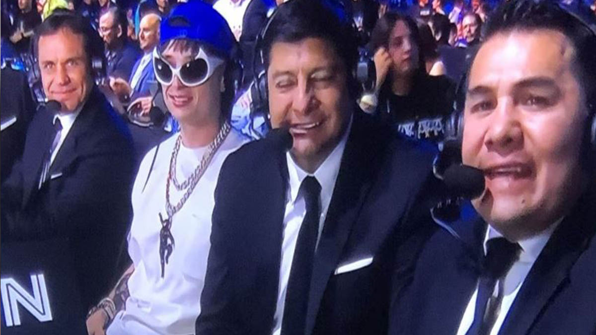 Y es que el cantante fue invitado como comentarista en la pelea de este sábado en el Estadio Akron por la cadena TUDN.