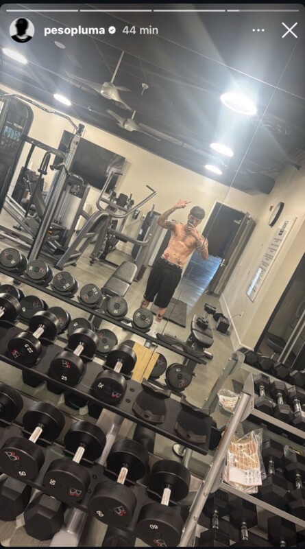 En la fotografía, el artista aparece frente al espejo rodeado de mancuernas, y es que en los últimos días el cantante comparte contenido relacionado con el gimnasio, lo que sugiere que ha decidido dedicar tiempo y esfuerzo a mejorar su condición física.