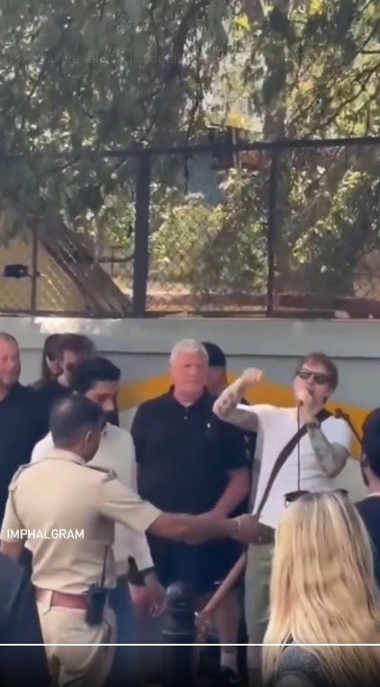 Durante su estancia en Bangalore, el cantante decidió animar el ambiente en Church Street, una de las zonas más populares de la ciudad. Mientras interpretaba Shape of You, la policía llegó para detener el espectáculo, argumentando que no estaba permitido.
