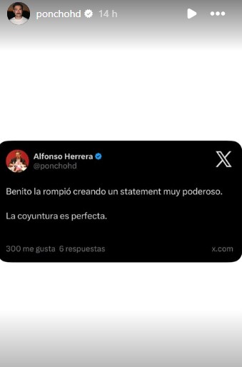 Tras los cuestionamientos sobre el desempeño del artista, Alfonso Herrera no dudó en respaldarlo. A través de su cuenta de X, el exintegrante de RBD respondió a un comentario negativo de forma contundente: para defender a Bad Bunny de quienes aseguran que «canta feo», Herrera afirmó, con humor, que él cantaba peor cuando estaba en RBD.