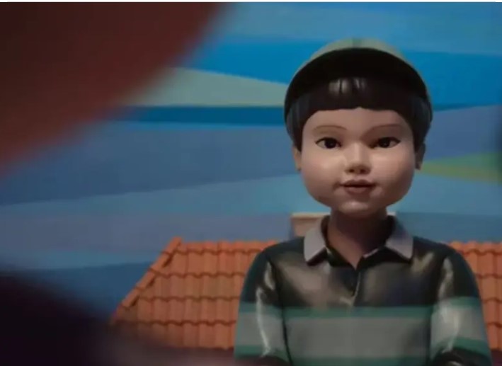 En esta escena, tres jugadores (Jugador 096, Jugador 100 y Jugador 353) ingresan a una nueva sala de juegos. Allí, se encuentran cara a cara con Young-hee, la icónica muñeca del juego de “luz roja, luz verde” que se ha convertido en un símbolo de la serie. Sin embargo, esta vez no está sola: un robot masculino aparece junto a ella.