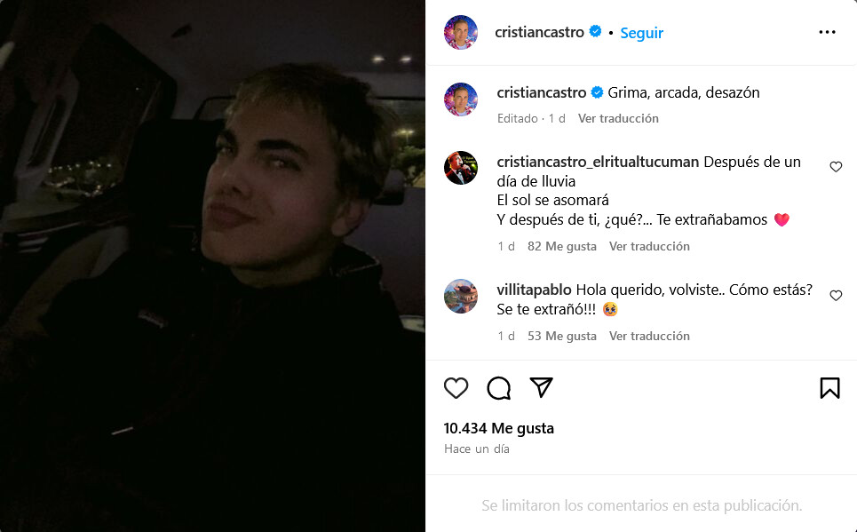 Aunque el intérprete de «Lloran las rosas» no había utilizado su cuenta de Instagram, este fin de semana el hijo de Verónica Castro publicó una foto haciendo una mueca con el siguiente mensaje: «Grima, arcada, desazón».