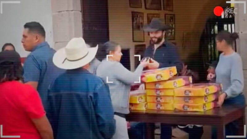 El hijo menor de Pepe Aguilar fue captado junto a su madre, Aneliz Álvarez, mientras entregaban cajas de pan y algunos juguetes a niñas y niños del poblado, ubicado en las inmediaciones del rancho El Soyate, propiedad de la familia Aguilar.