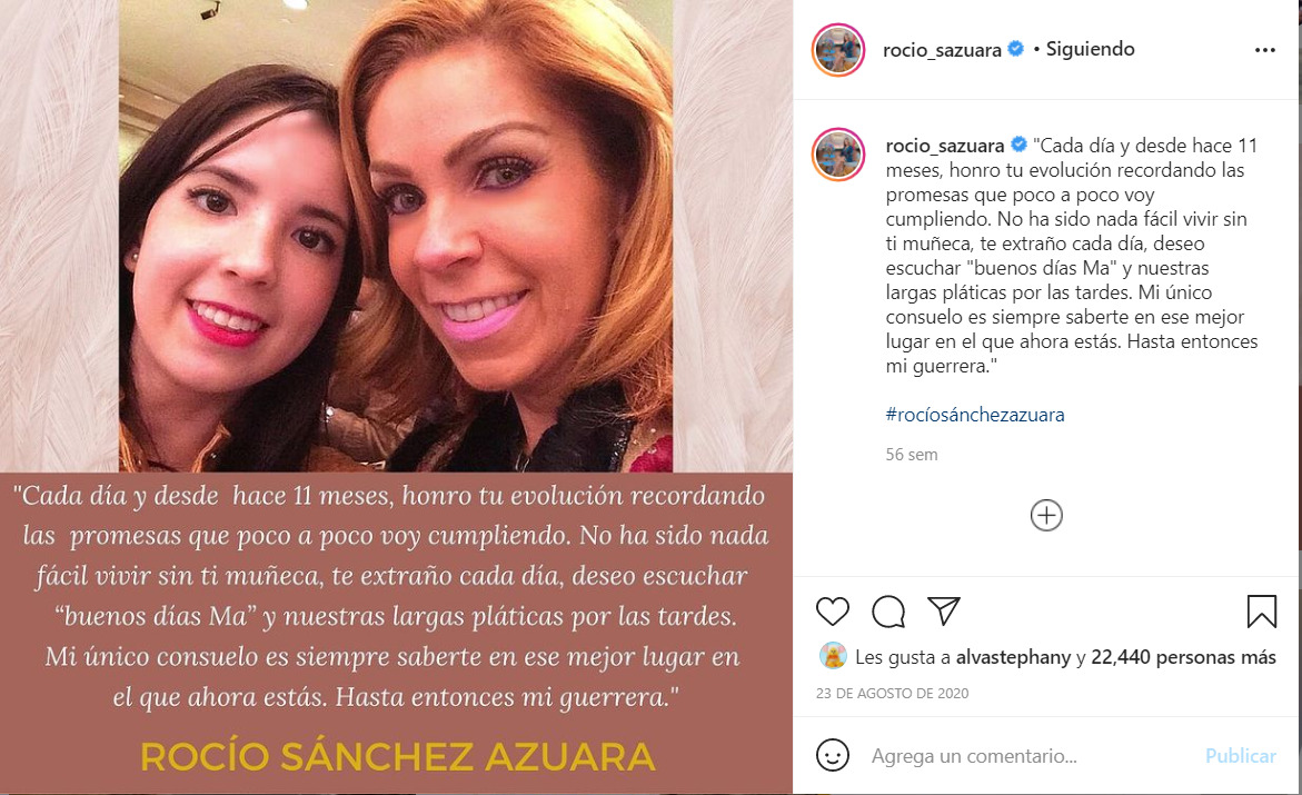 El próximo 23 de septiembre se cumplen dos años del fallecimiento de Daniela, hija de Rocío Sánchez Azuara, a causa de complicaciones con el lupus eritematoso sistémico.