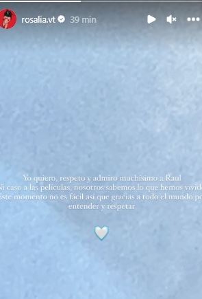 Asimismo, Rosalía agradeció el apoyo de sus seguidores y pidió comprensión y respeto por el difícil momento que está atravesando.