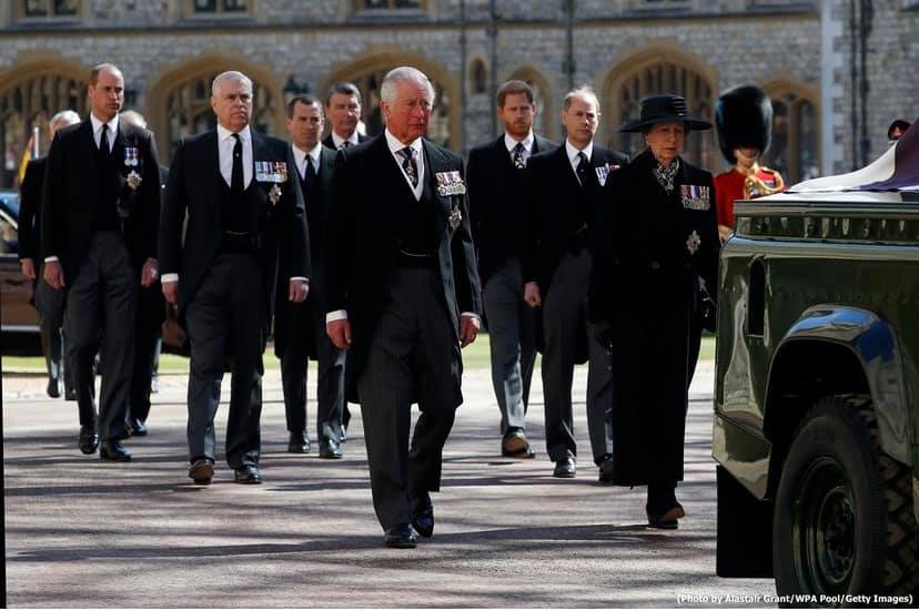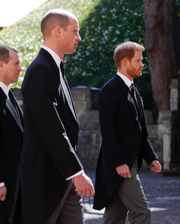 William y Harry, estaban entre los nueve miembros de la Familia Real que caminaron detrás del ataúd del Príncipe Felipe de Edimburgo, aunque separados por su primo Peter Philips, por pedido de la reina Isabel II para minimizar tensiones.