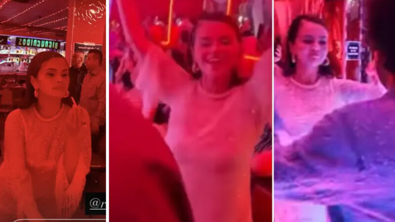 En los videos difundidos en redes sociales, se observa a la cantante de Hands To Myself participando activamente del baile grupal al son del clásico de Los Tucanes de Tijuana.