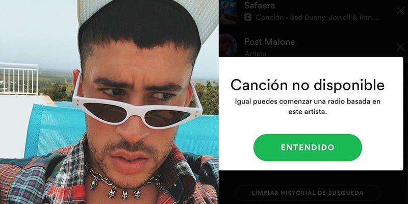 Al entrar a las listas de algunas playlist de la plataforma y tratar de darle “play” a la canción aparece un mensaje que dice: “Canción no disponible, igual puedes comenzar una radio basada en este artistas”, lo que ha provocado varias reacciones en redes.