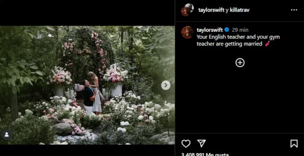 Junto a la imagen, Swift escribió con humor: “Tu profesora de inglés y tu profesor de gimnasia se van a casar”.