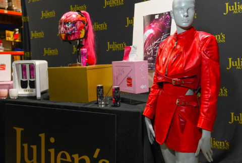 El conjunto de chaqueta, minifalda y body con cortes laterales, que se volvió viral gracias al meme de la catalana masticando chicle antes de cantar «Bizcochito» en los conciertos del tour, está a la venta en el portal de la casa de subastas Julien’s Auctions.