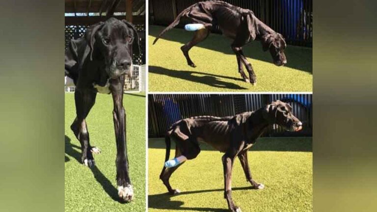 Lucas, un perro de raza Gran Danés fue completamente abandonado en la localidad estadounidense de Ware Shoals, en Carolina del Sur, sus dueños lo amarraron en un poste de su casa, dejándolo sin agua y sin comida.