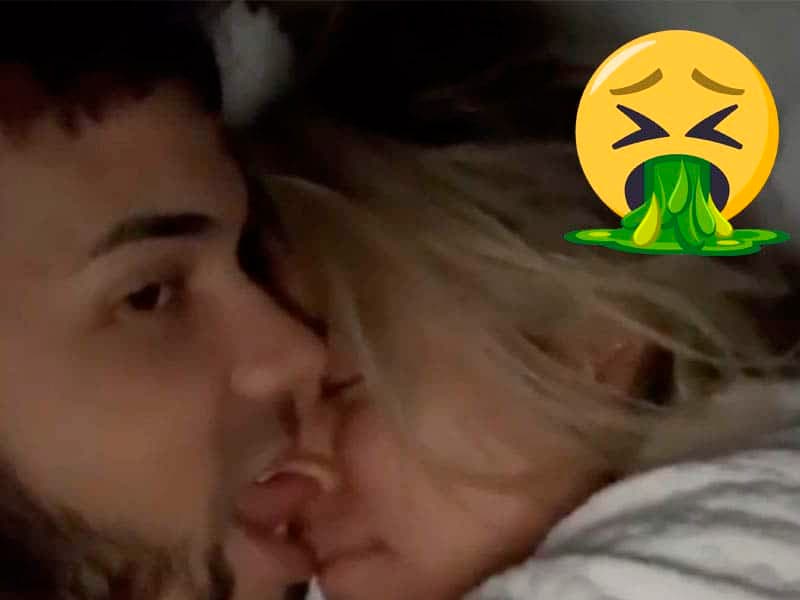 Ambos estaban en la cama relajados y abrazados pero de repente literal, Anuel le mete la lengua en la nariz de Karol y así se come sus mocos, una acción que causó asco y burla en redes sociales.