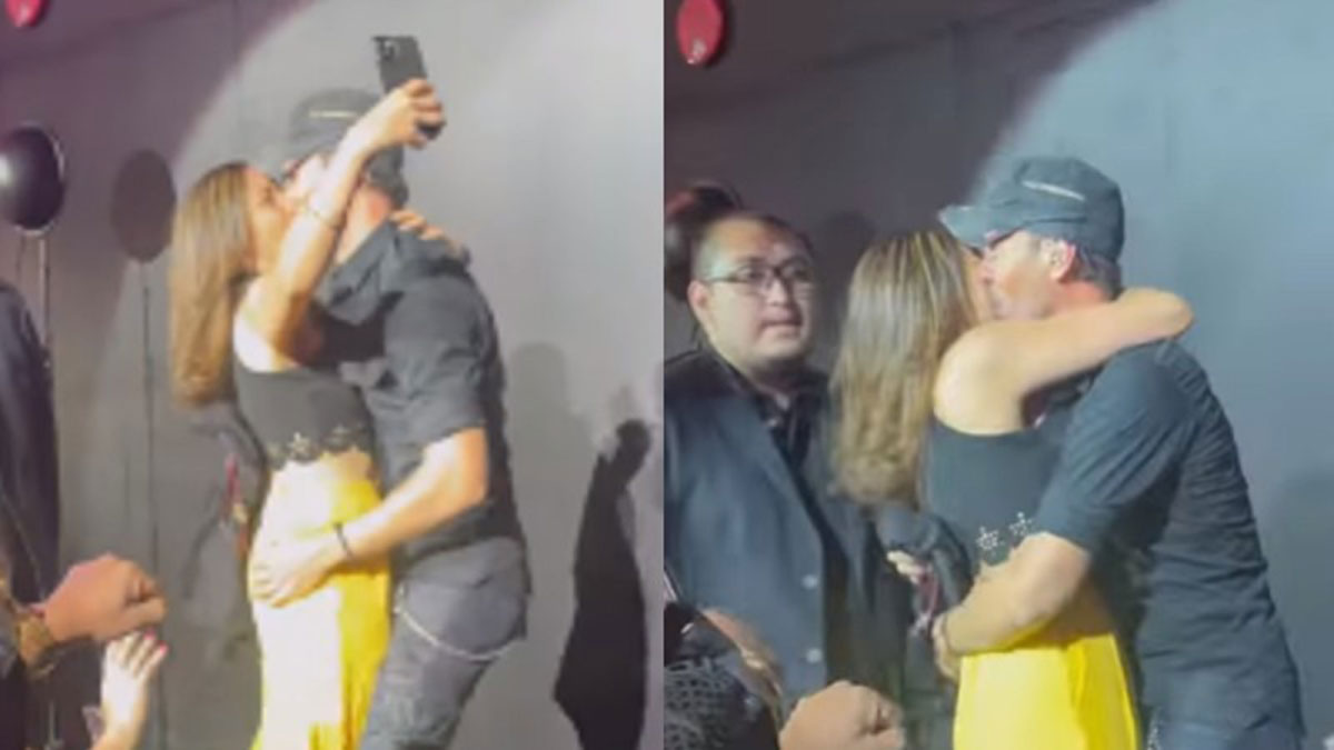 En las imágenes se puede ver cómo la fanática sube a una tarima para tomarse una foto con Iglesias, este la toma efusivamente y le besa el cachete mientras esta aprovecha para sacar la fotografía.