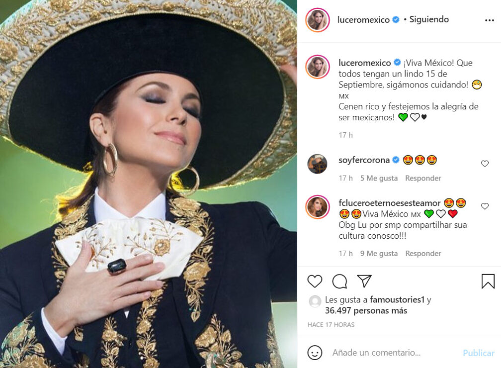 La intérprete mexicana Lucero compartió un video enviando saludos a su nación por 211 años de independencia. “Feliz, orgullosa y agradecida de ser mexicana y poder representar a mi país en todas partes. Celebrar este día en unión”, redactó la cantante.