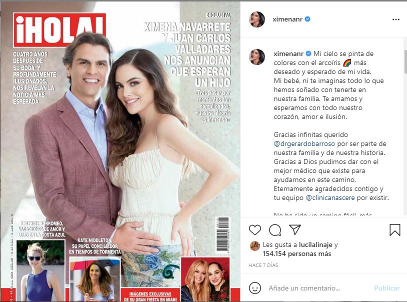 “Mi cielo se pinta de colores con el arcoíris más deseado y esperado de mi vida. Mi bebé, ni te imaginas todo lo que hemos soñado con tenerte en nuestra familia. Te amamos y esperamos con todo nuestro corazón, amor e ilusión”, escribió cuando compartió su primer ultrasonido.