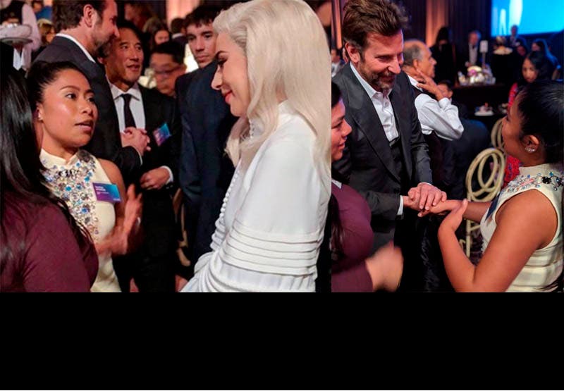 Cacharon a Yalitza Aparicio platicando con la cantante Lady Gaga y el actor Bradley Cooper en el almuerzo de los Oscar 2019.