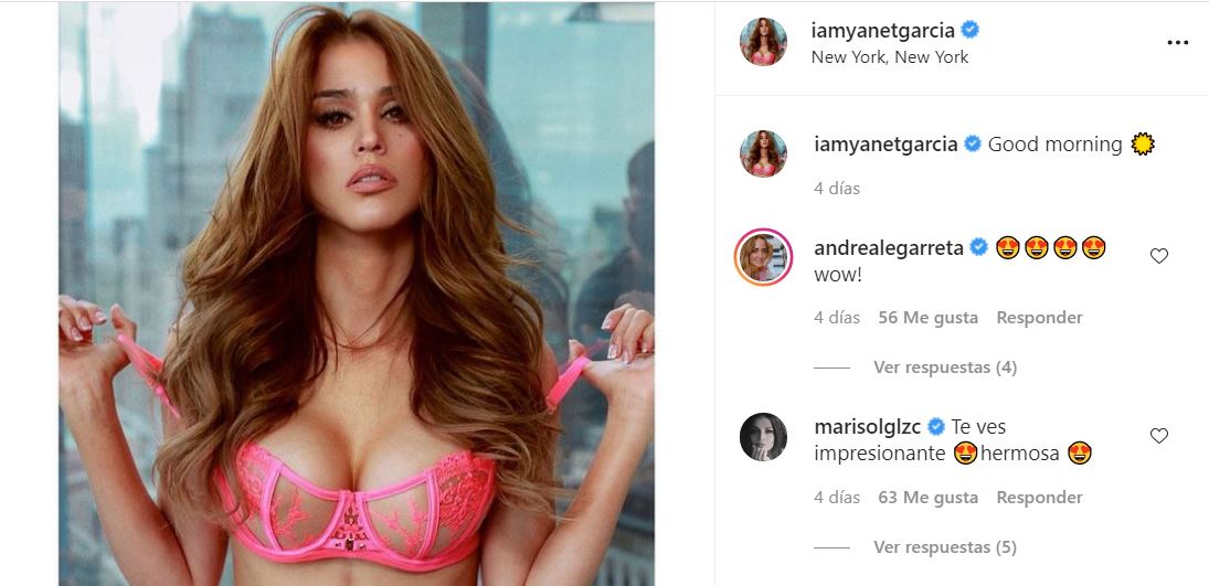 En las imágenes se puede ver a la joven de 30 años presumiendo su figura en un atrevido conjunto de lencería de color negro que complementó con unas zapatillas de charol en el mismo tono. Hasta el momento la ‘probadit’ de Yanet ha recibido 1.5 millones de ‘me gusta’ y miles de comentarios.