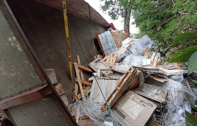 Por causas hasta ahora desconocidas, un tractocamión de doble remolque que transportaba materiales de construcción de pisos, se accidentó volcando sobre la vía carretera del tramo Tulum-Felipe Carrillo Puerto, el accidente dejó cuantiosos daños materiales.