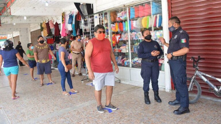 La primera medida se refuerza en el mercado municipal Benito Juárez, lugar en la que solamente se contará con 2 accesos, uno para el área de alimentos y otro en los locales al interior del mercado.