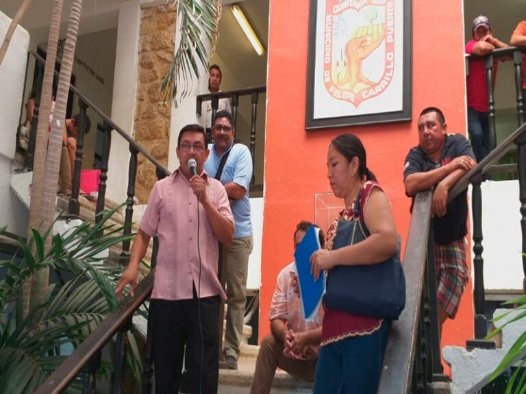 Armando Reyes Hernández líder del Sindicato de Trabajadores al Servicio del Ayuntamiento de Felipe Carrillo Puerto, señaló que es la segunda vez, en este año, que se atrasan los pagos de la base trabajadora y que en caso de que no se hubiera resuelto, la manifestación continuaría.