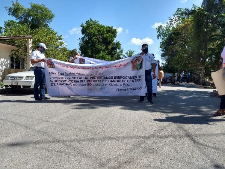 Continúa protesta de docentes por irregularidades laborales.- Ante la falta de acuerdos entre la Secretaría de Educación en Quintana Roo (SEQ) y la base magisterial del SITEQROO, sobre la convocatoria de cambio de adscripción, docentes protestaron de nuevo en Felipe Carrillo Puerto.