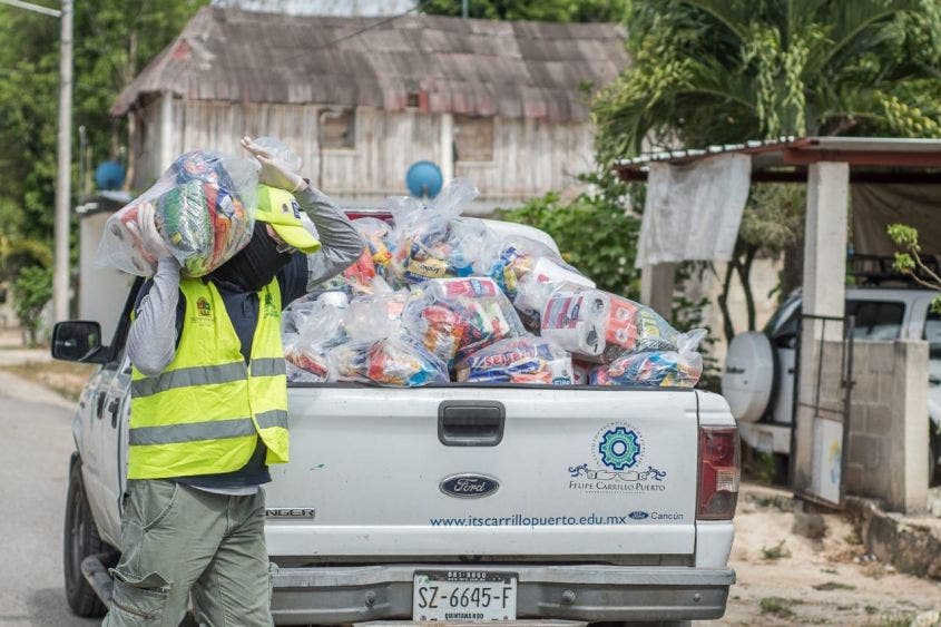 El Tecnológico Nacional de México, campus Felipe Carrillo Puerto, entregó despensa a familias de alumnos de la institución educativa, ante la cuarentena en la que se encuentran los jefes de familia que en su mayoría trabajaban en la Riviera Maya.