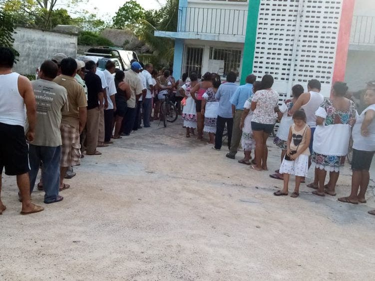 Ante esta situación, hombres y mujeres se concentraron en el palacio de la alcaldía formándose en largas filas para firmar el documento en la que piden a través del alcalde Eugenio Canté Balam a representantes de la CFE tomar cartas en el asunto, puesto que ante esta contingencia sanitaria no pueden salir.