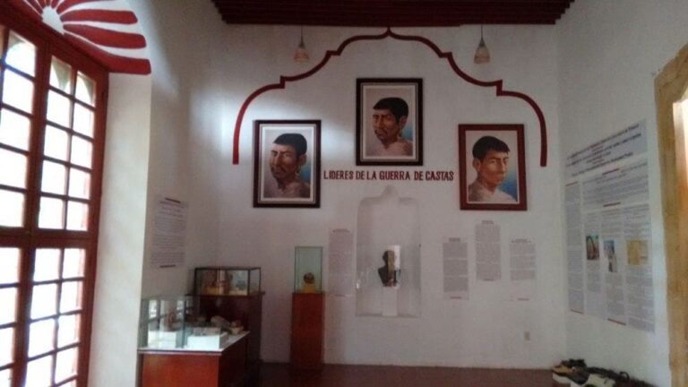 En esta ocasión, desde la sala en donde se le rinde tributo a Jacinto Pat, Cecilio Chi y Manuel Antonio Ay, caudillos de la rebelión maya, las promotoras explicaron que el museo conserva balas, machetes y armas de fuego utilizados durante la lucha entre mayas y blancos.