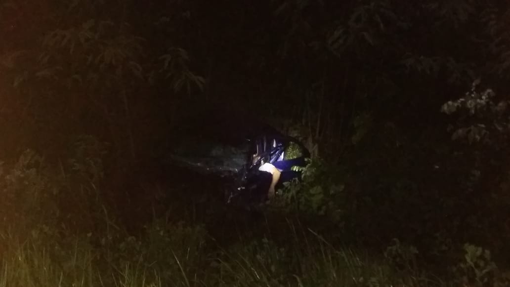 En la otra unidad de color azul se encontró dentro de la maleza con dos personas a bordo, aparentemente sin signos vitales.
