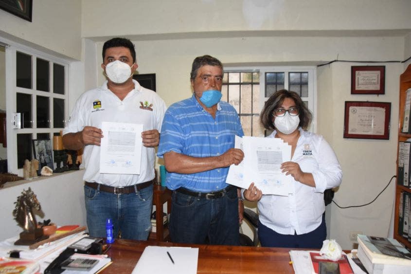 Ambas partes, el secretario del ejido Hugo Flores Vega y la enlace territorial del Proyecto Tren Maya, Lilia González Moreno, participaron en el protocolo realizado ante el notario público número 31, Enrique Arámbula, con la cual se cumple el compromiso adquirido el pasado 19 de julio y se da paso al Proyecto Integral de Desarrollo Tren Maya.