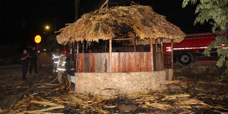 Los hechos se registraron a las 2 horas con 30 minutos en la calle 80 por 99 de la colonia Emiliano Zapata II, cuando fue reportado el incendio de una palapa habilitado como caseta policial.
