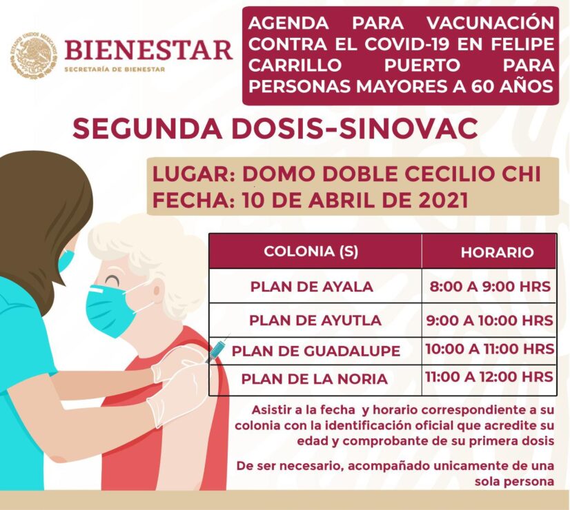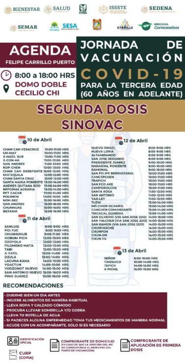 Autoridades municipales y de la Secretaría de Salud de Felipe Carrillo Puerto, dieron a conocer mediante una rueda de prensa la logística que se implementará hoy viernes, para la aplicación de la segunda dosis de la vacuna contra el coronavirus a adultos mayores.